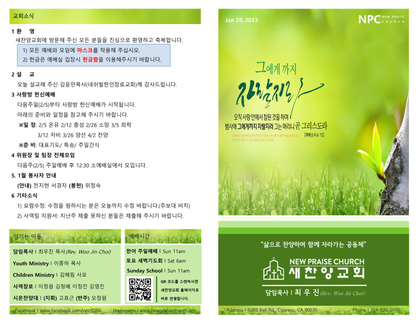 January 28, 2023 . 새찬양교회 [012923] 주일예배 주보