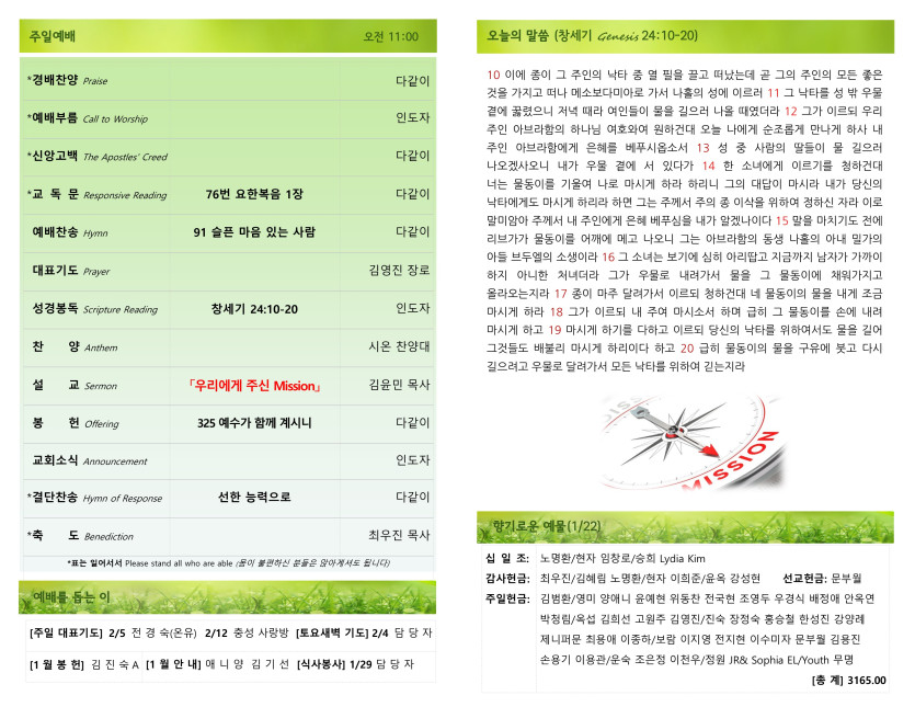 [012923] 주일예배 주보 > 예배주보 Bulletin