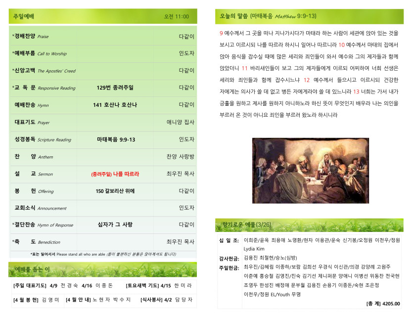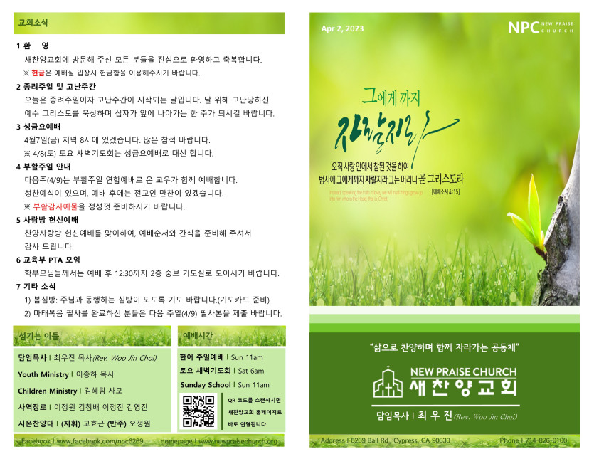April 01, 2023 . 새찬양교회 [040223] 주일예배 주보