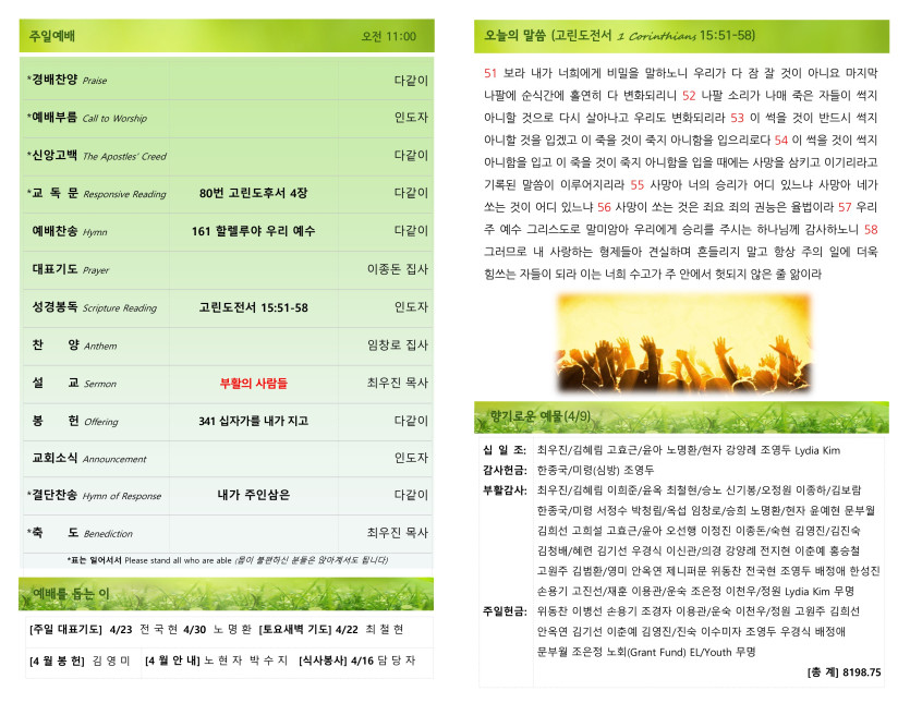 [041623] 주일예배 주보 > 예배주보 Bulletin