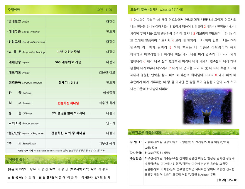 May 06, 2023 . 새찬양교회 [050723] 주일예배 주보