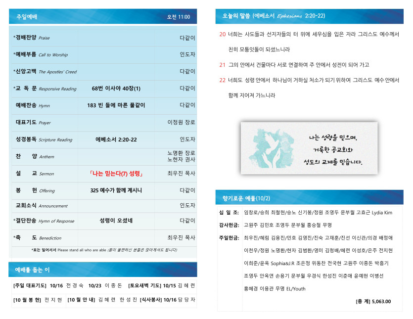 [1009] 주일예배 주보 > 예배주보 Bulletin