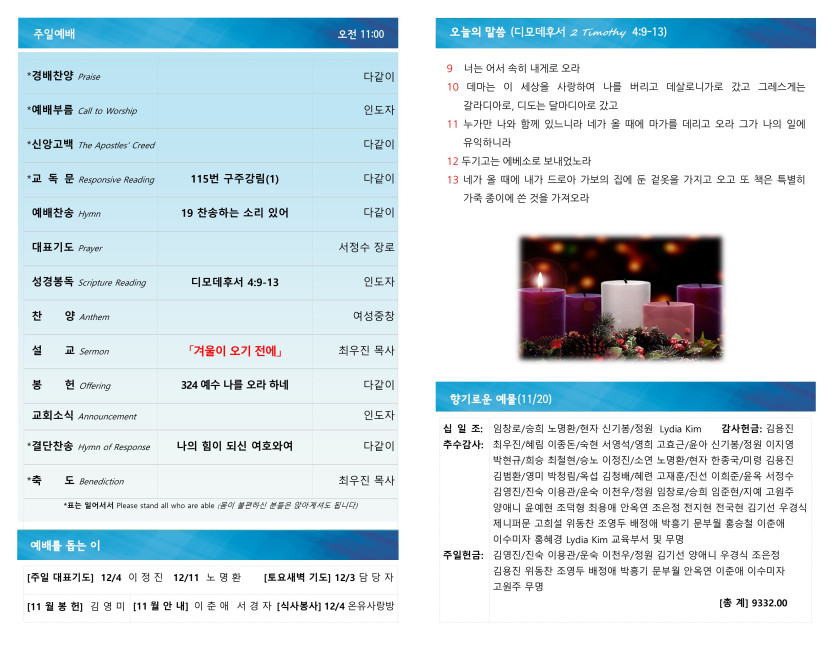 [1127] 주일예배 주보 > 예배주보 Bulletin