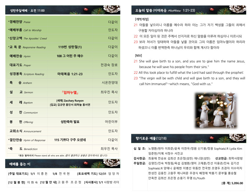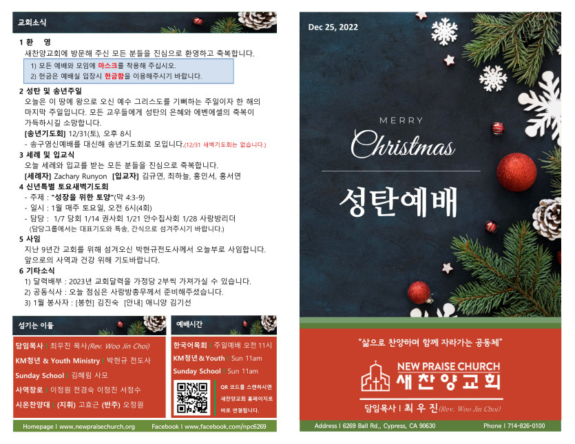 December 24, 2022 . 새찬양교회 [1225] 성탄주일예배 주보