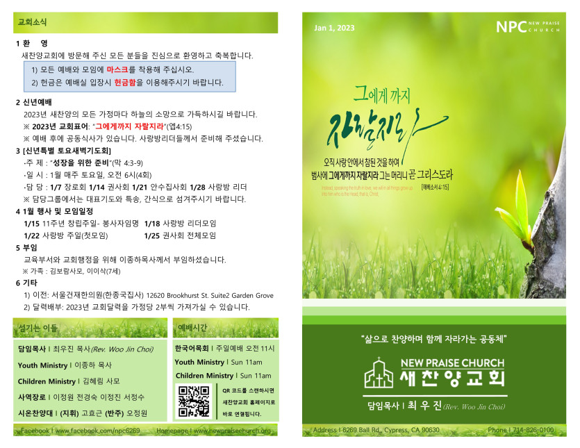 January 01, 2023 . 새찬양교회 [010123] 주일예배 주보