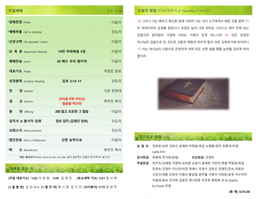 January 14, 2023 . 새찬양교회 [011523] 주일예배 주보