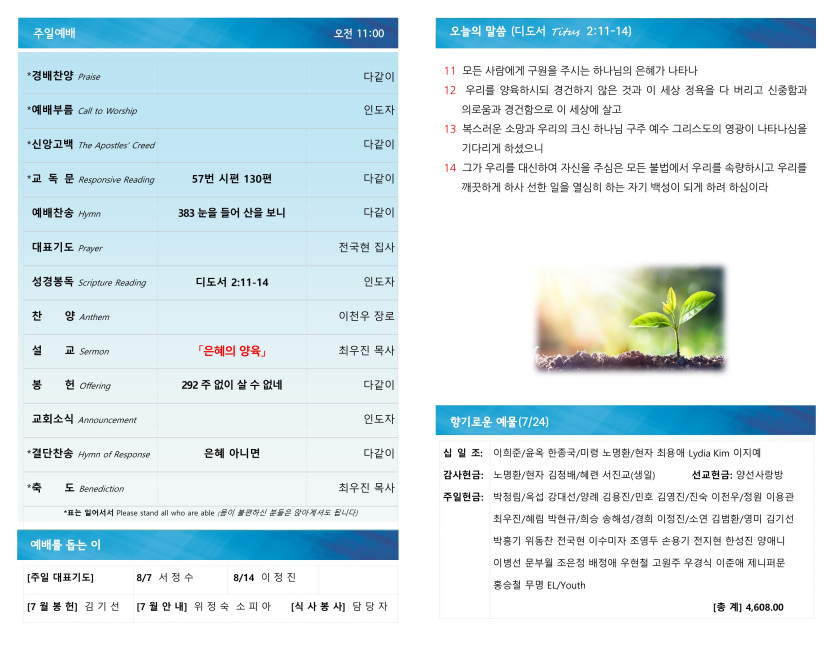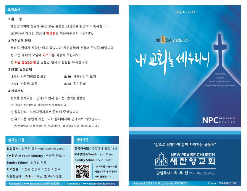 July 30, 2022 . 새찬양교회 [0731] 주일예배 주보