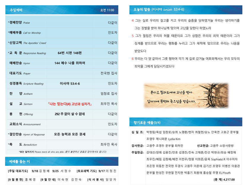 [0911] 주일예배 주보
