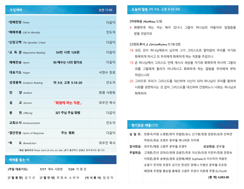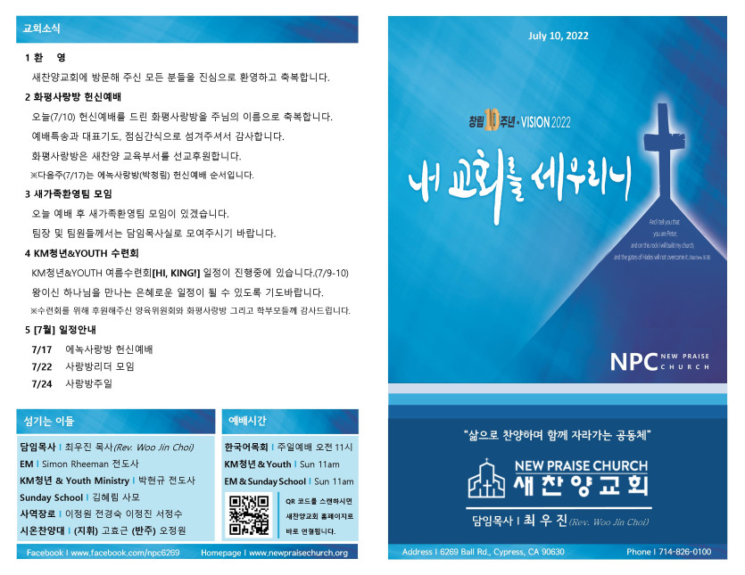 July 09, 2022 . 새찬양교회 [0710] 주일예배 주보