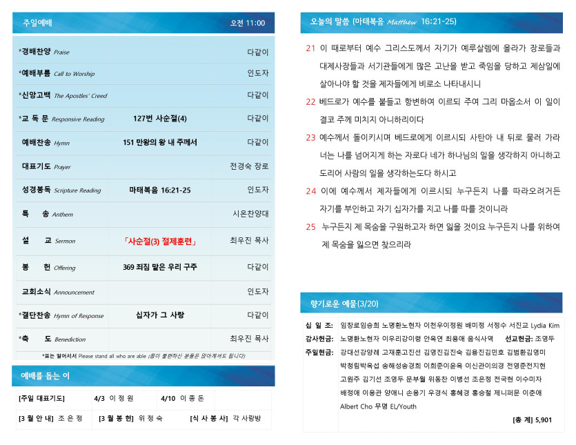 [0327] 주일예배 주보 > 예배주보 Bulletin