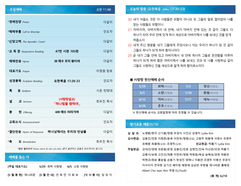 [0522] 주일예배 주보 > 예배주보 Bulletin