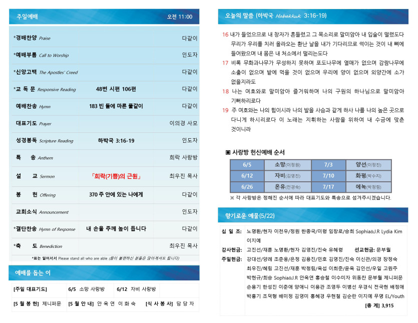 [0529] 주일예배 주보 > 예배주보 Bulletin