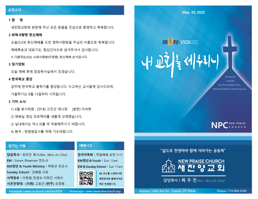 May 28, 2022 . 새찬양교회 [0529] 주일예배 주보