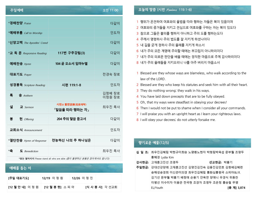 [1212] 주일예배 주보 > 예배주보 Bulletin