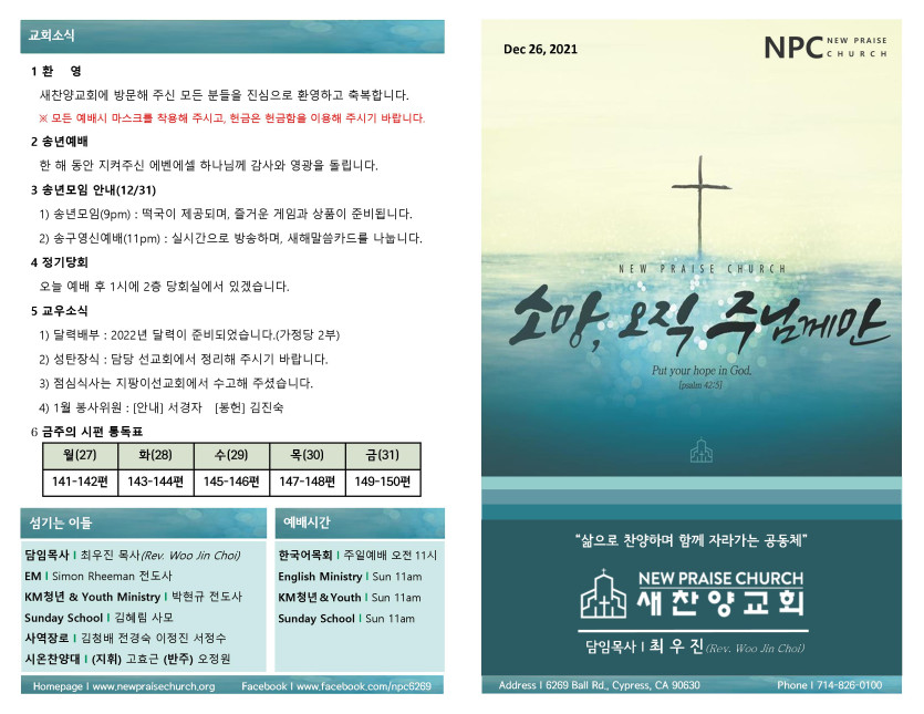 December 25, 2021 . 새찬양교회 [1226] 송년예배 주보