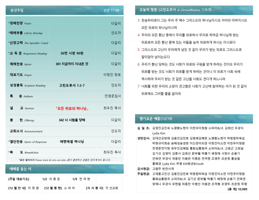 [1226] 송년예배 주보 > 예배주보 Bulletin