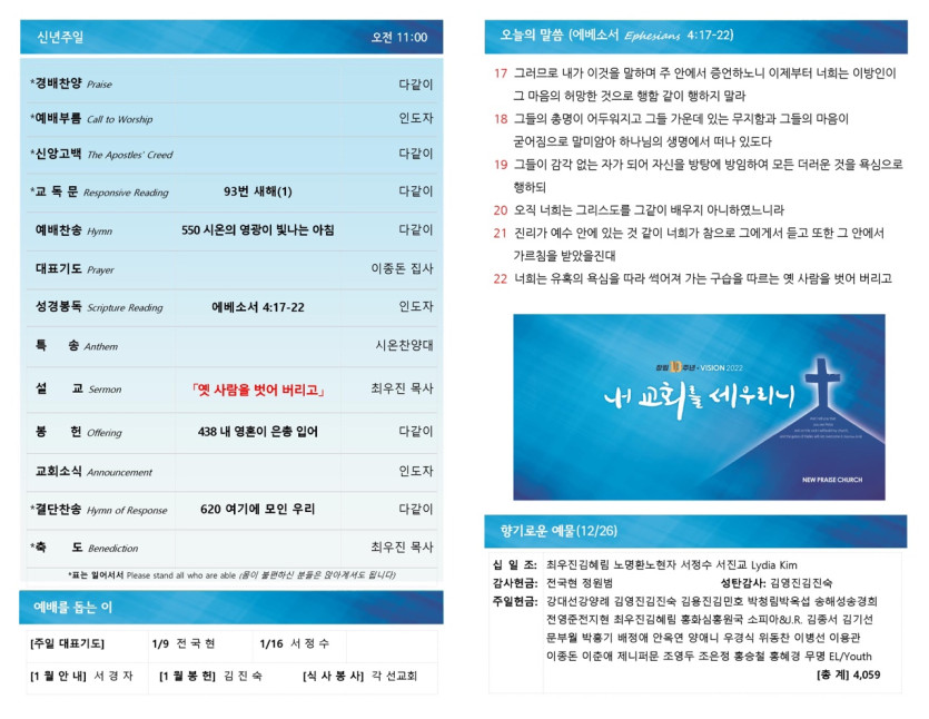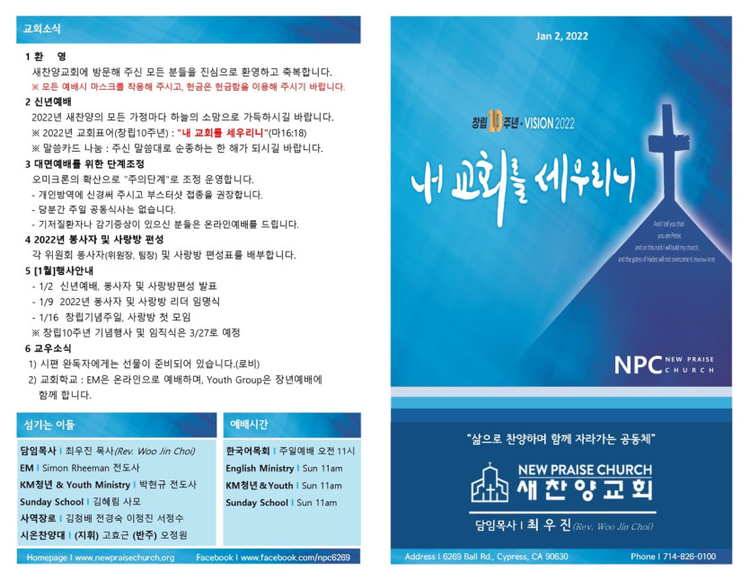 January 01, 2022 . 새찬양교회 [0102] 신년예배 주보