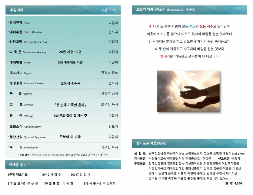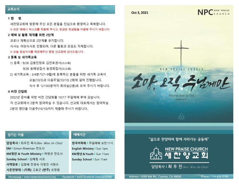 October 02, 2021 . 새찬양교회 [1003] 주일예배 주보
