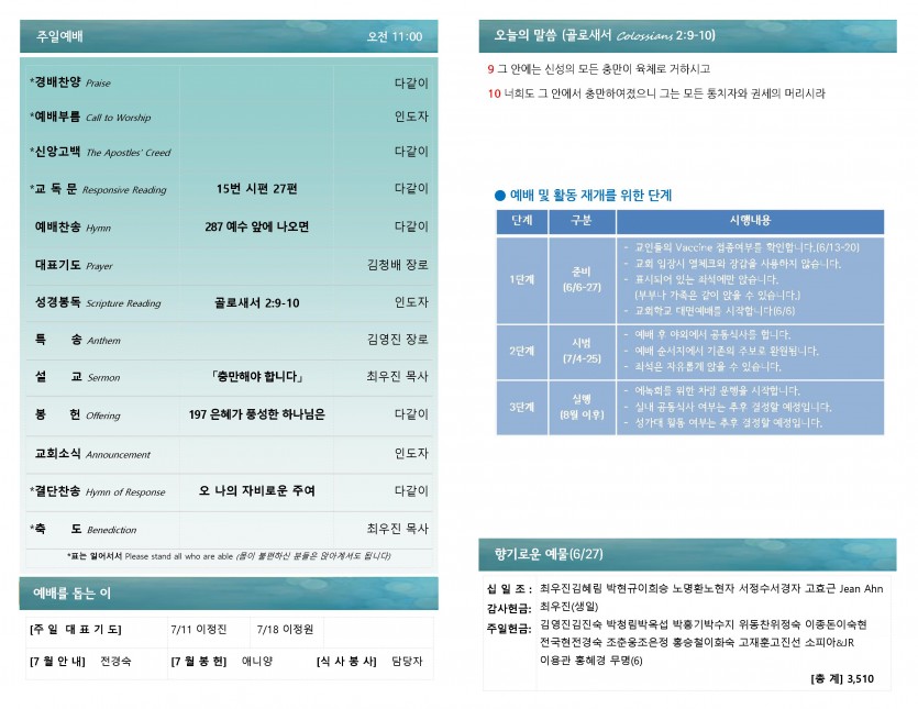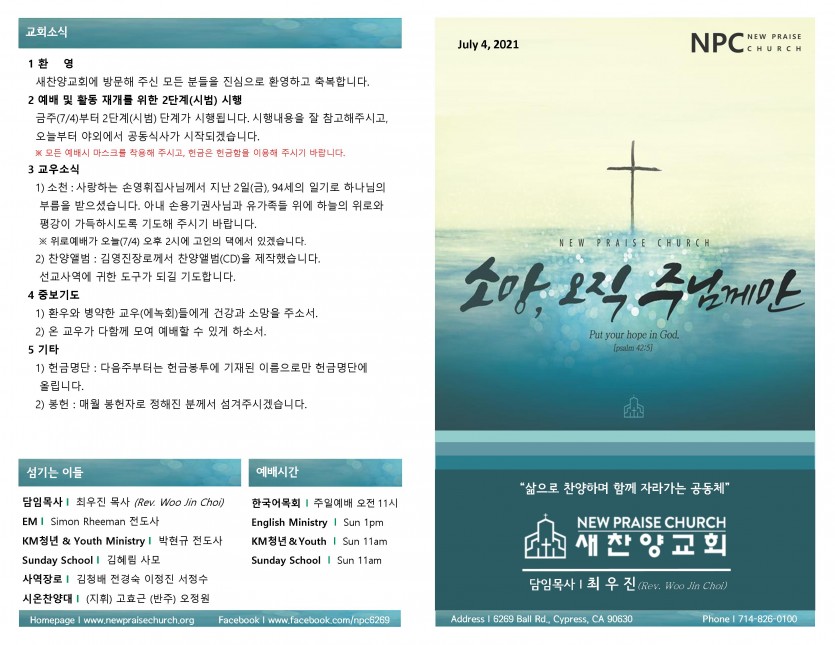 July 03, 2021 . 새찬양교회 [0704] 주일예배 주보