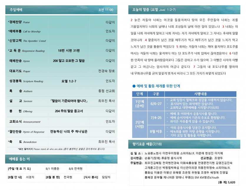 [0725] 주일예배 주보 > 예배주보 Bulletin