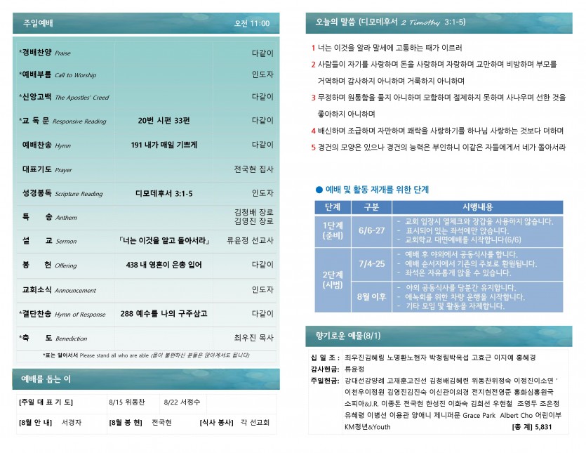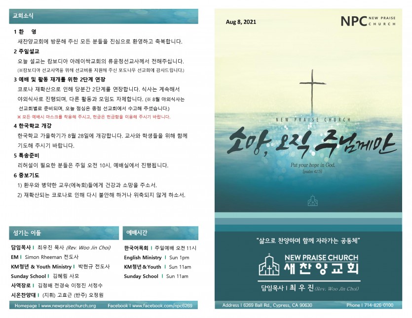 August 07, 2021 . 새찬양교회 [0808] 주일예배 주보
