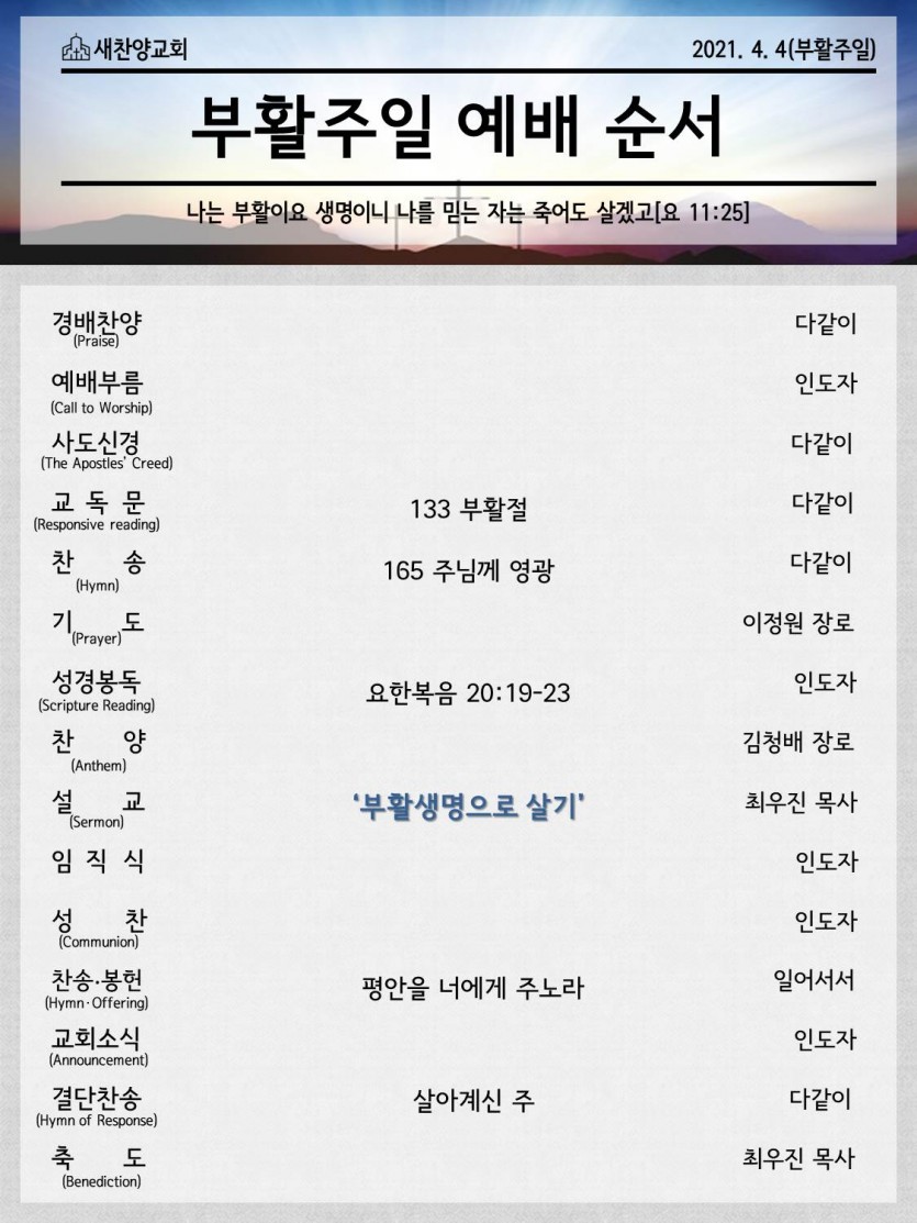 April 03, 2021 . 새찬양교회 [0404] 부활주일 예배순서지