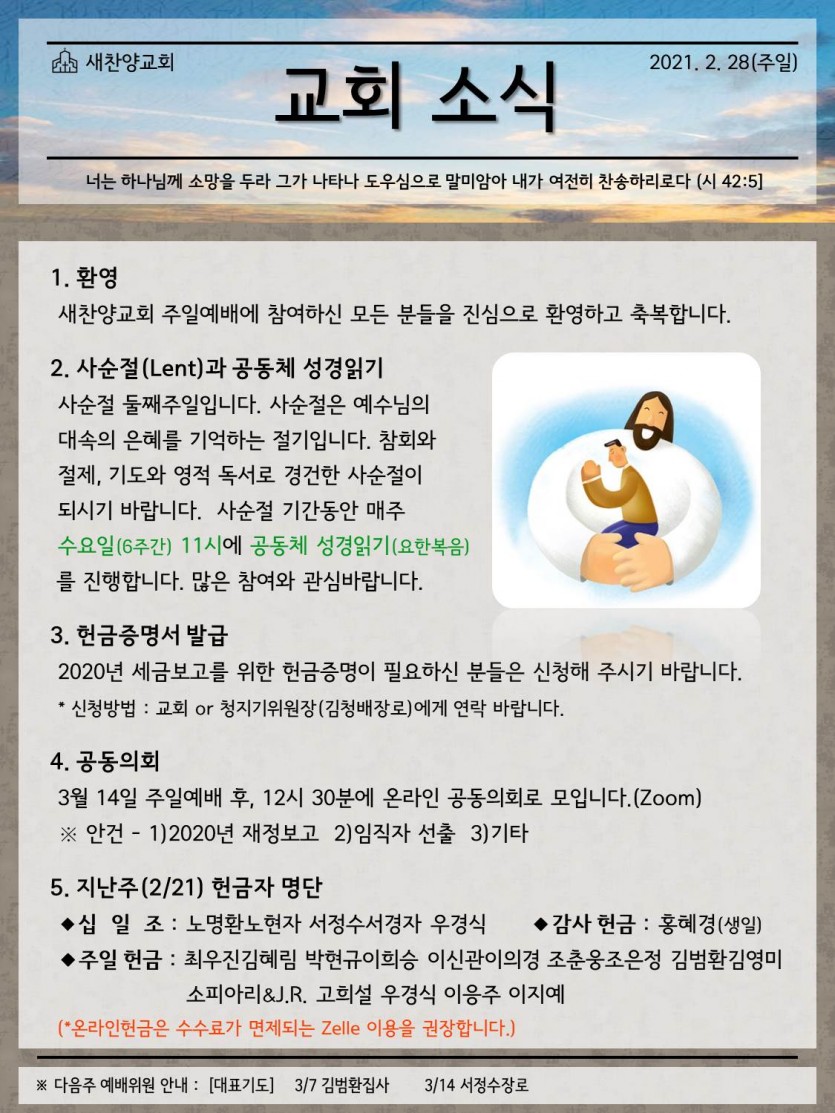 February 27, 2021 . 새찬양교회 [0228] 교회 소식지
