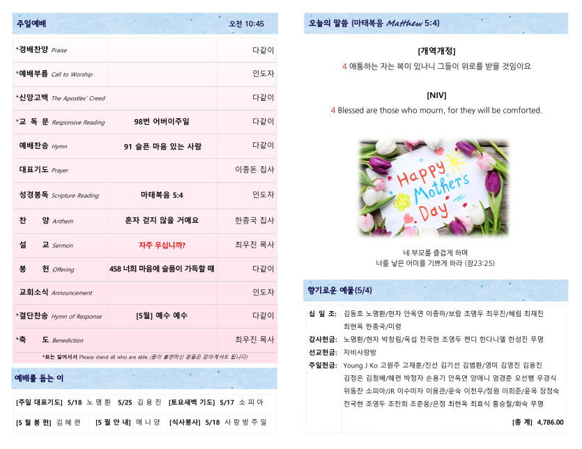 May 10, 2025 . 새찬양교회 [051125] 주일예배 주보