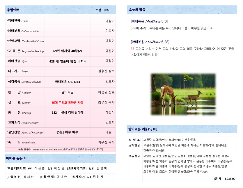 [052525] 주일예배 주보 > 예배주보 Bulletin