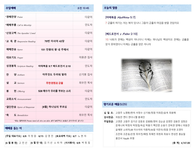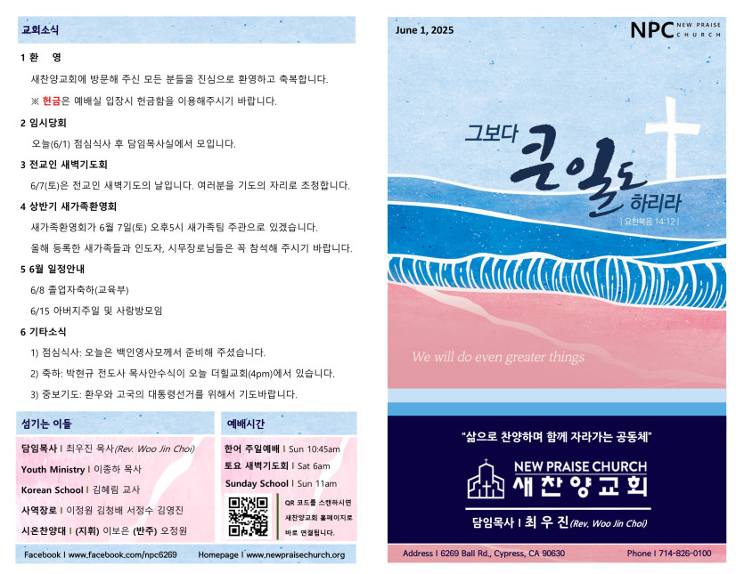 May 31, 2025 . 새찬양교회 [060125] 주일예배 주보