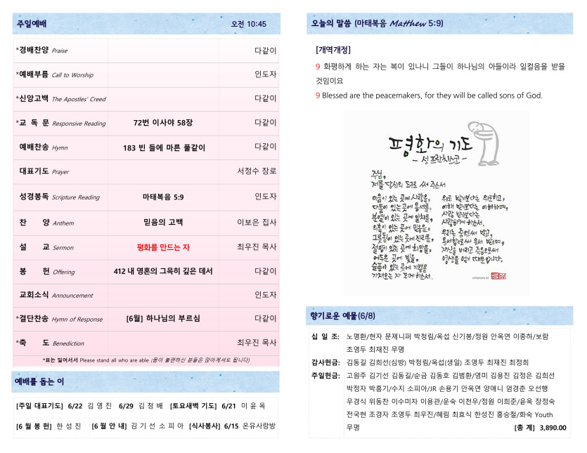 [061525] 주일예배 주보 > 예배주보 Bulletin