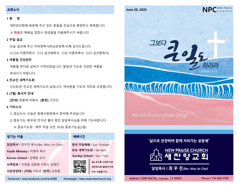 June 28, 2025 . 새찬양교회 [062925] 주일예배 주보