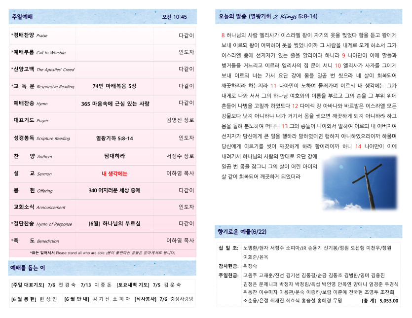 [062925] 주일예배 주보 > 예배주보 Bulletin