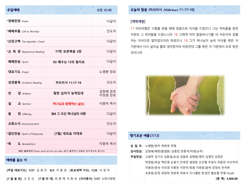 [072025] 주일예배 주보 > 예배주보 Bulletin