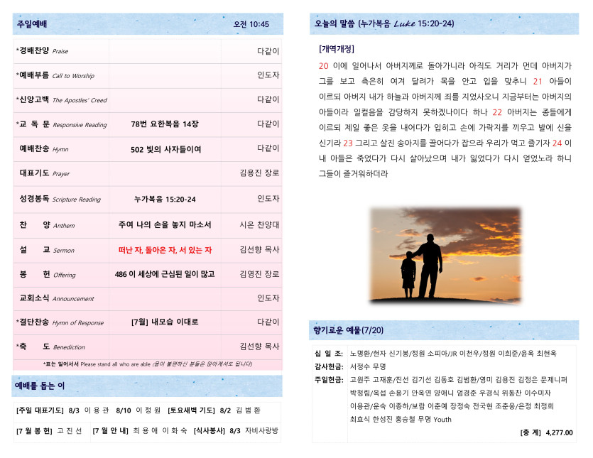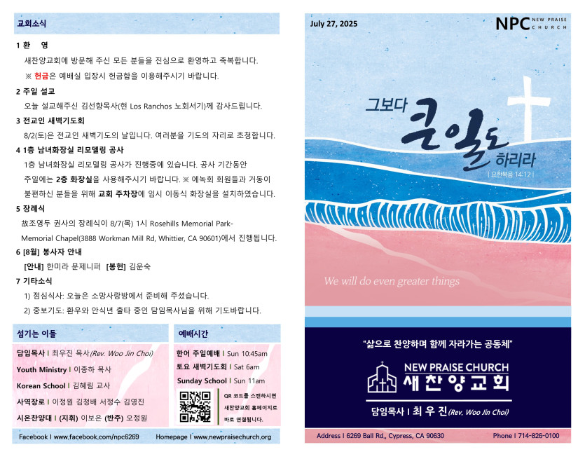 July 26, 2025 . 새찬양교회 [072625] 주일예배 주보