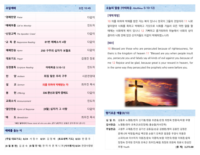 [081725] 주일예배 주보 > 예배주보 Bulletin