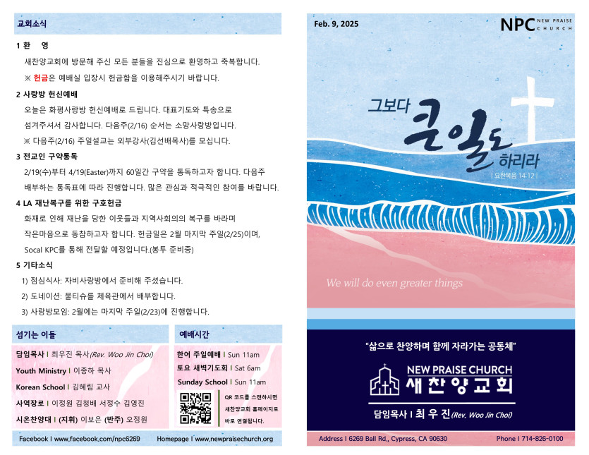 February 08, 2025 . 새찬양교회 [020925] 주일예배 주보