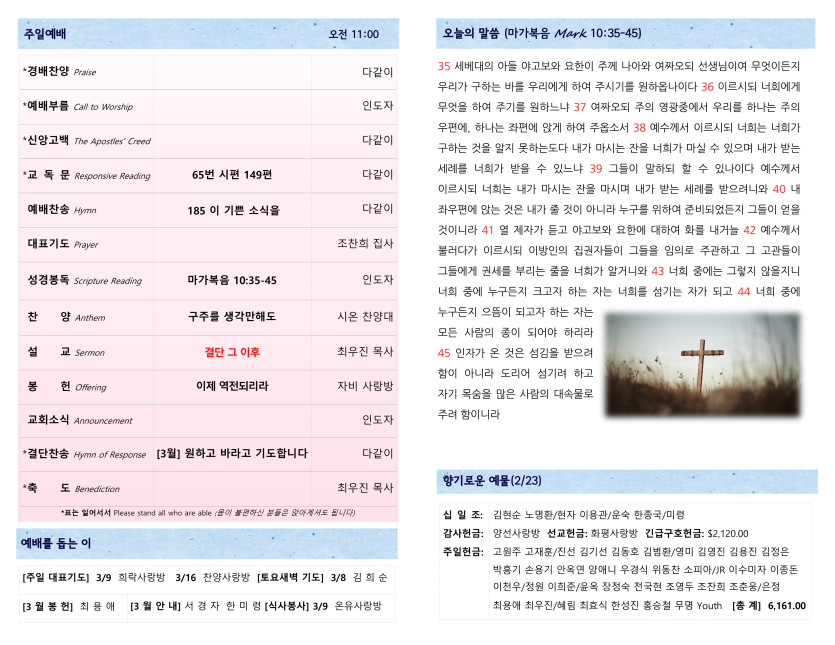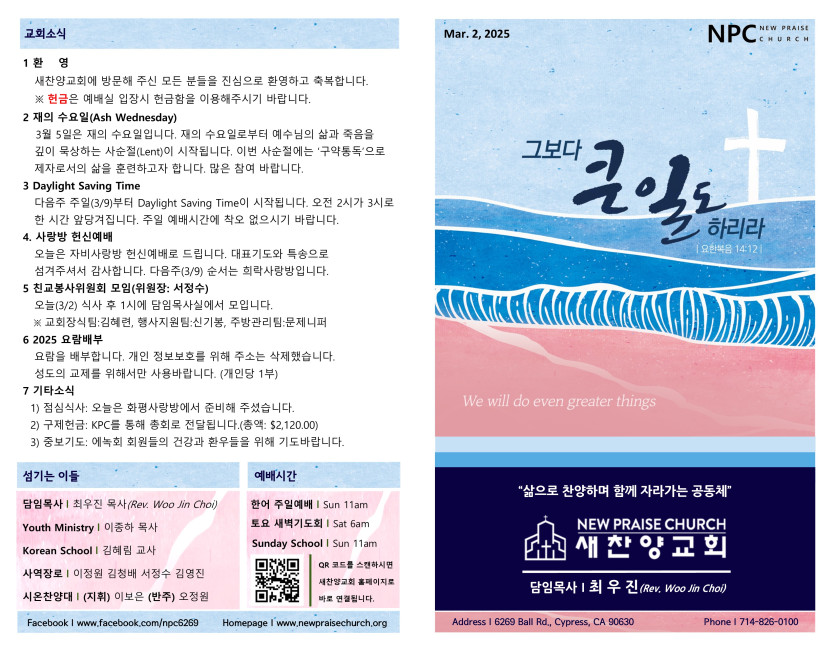March 01, 2025 . 새찬양교회 [030225] 주일예배 주보