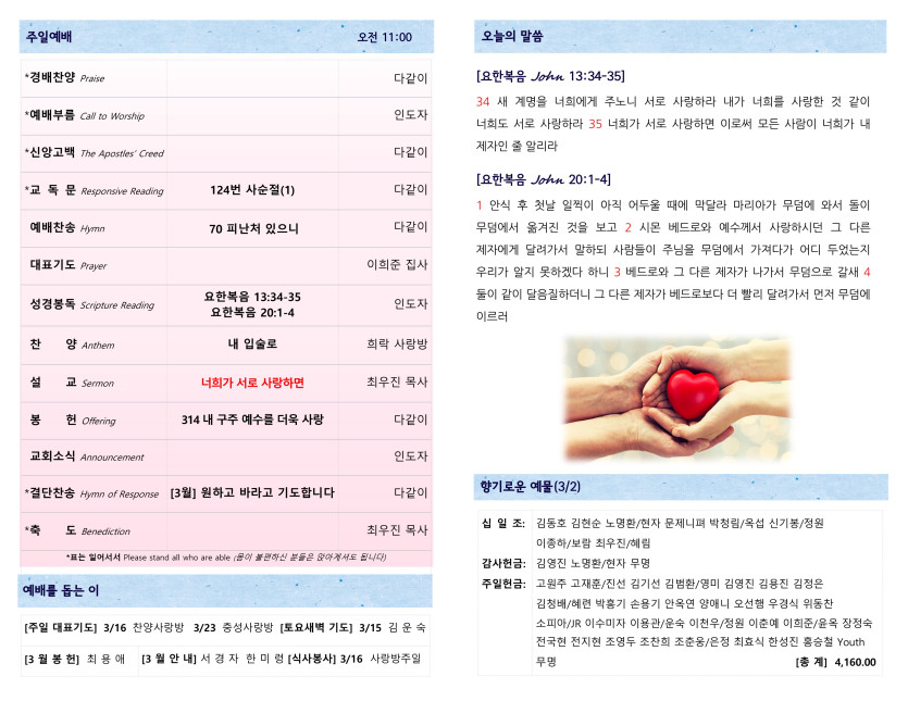 March 09, 2025 . 새찬양교회 [030925] 주일예배 주보