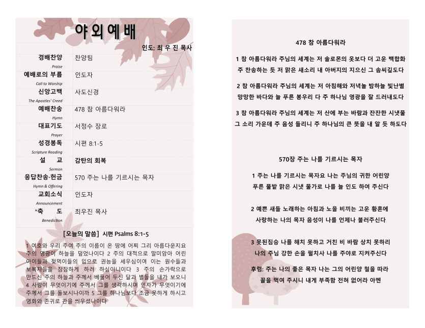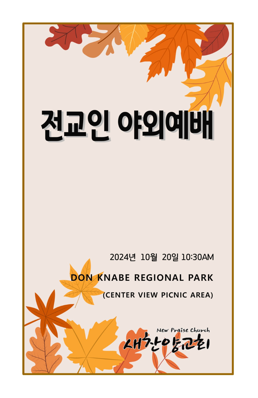 October 19, 2024 . 새찬양교회 [102024] 주일예배 주보