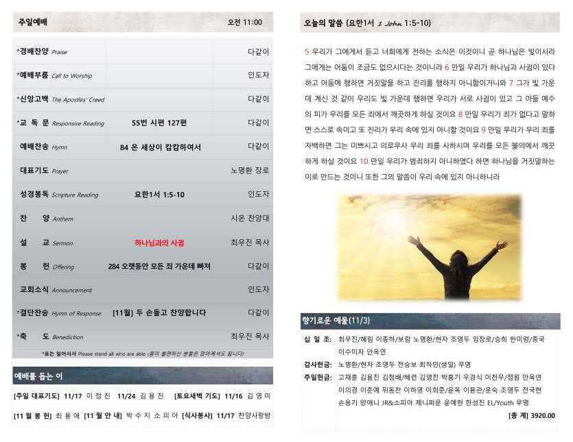 November 09, 2024 . 새찬양교회 [111024] 주일예배 주보