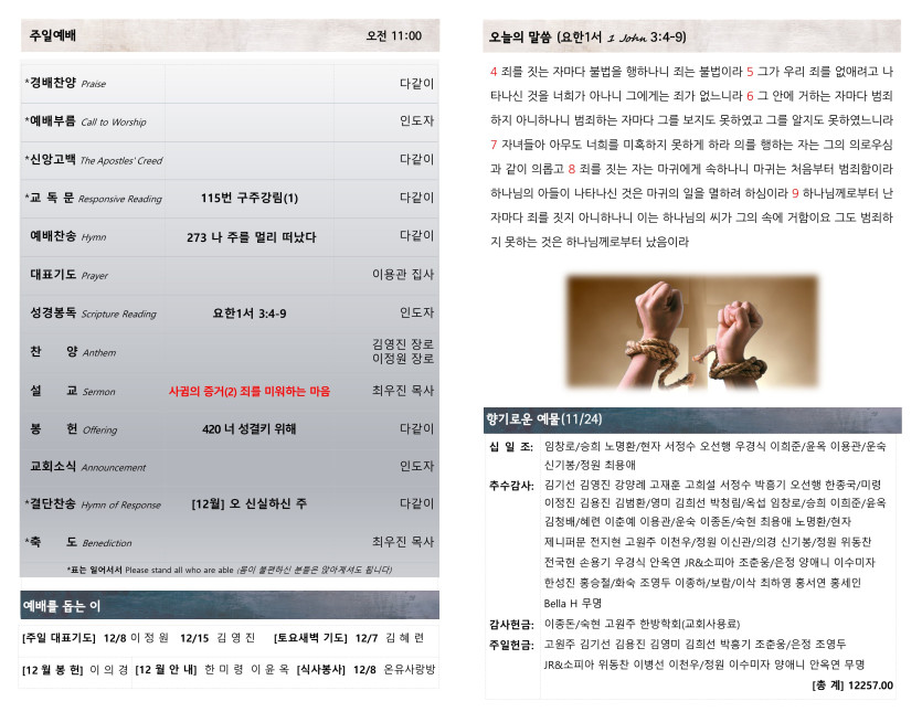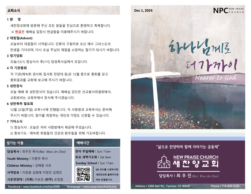 November 30, 2024 . 새찬양교회 [120124] 주일예배 주보