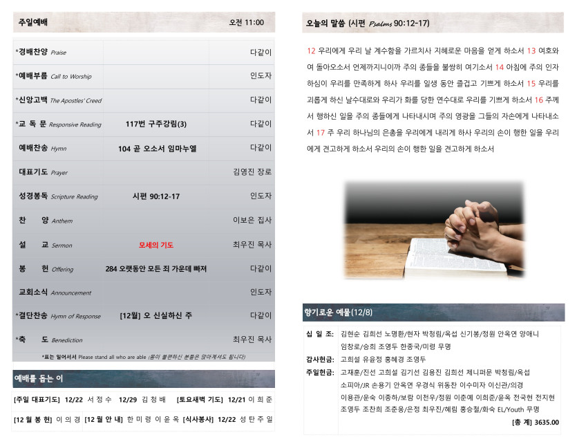 [121524] 주일예배 주보 > 예배주보 Bulletin