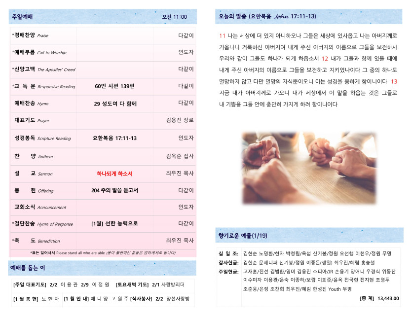 [012625] 주일예배 주보 > 예배주보 Bulletin