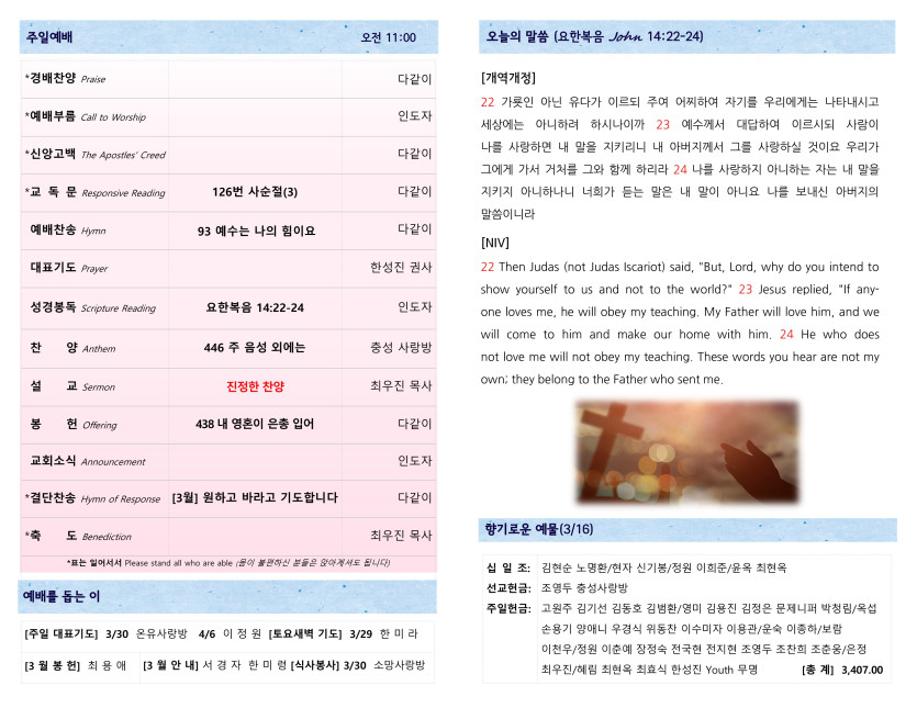 [032325] 주일예배 주보 > 예배주보 Bulletin
