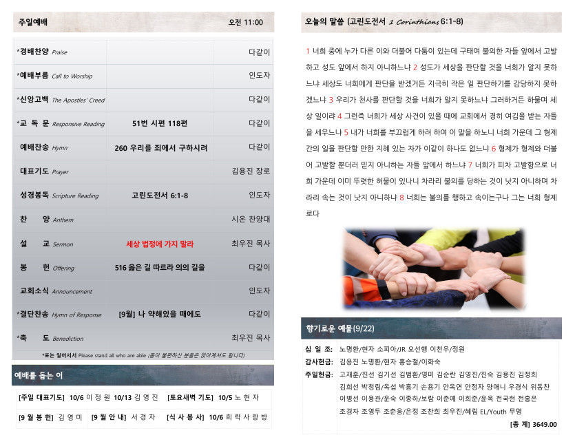 September 28, 2024 . 새찬양교회 [092924] 주일예배 주보