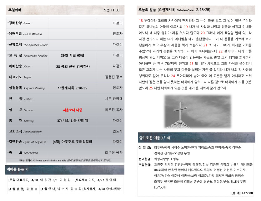 [042124] 주일예배 주보 > 예배주보 Bulletin