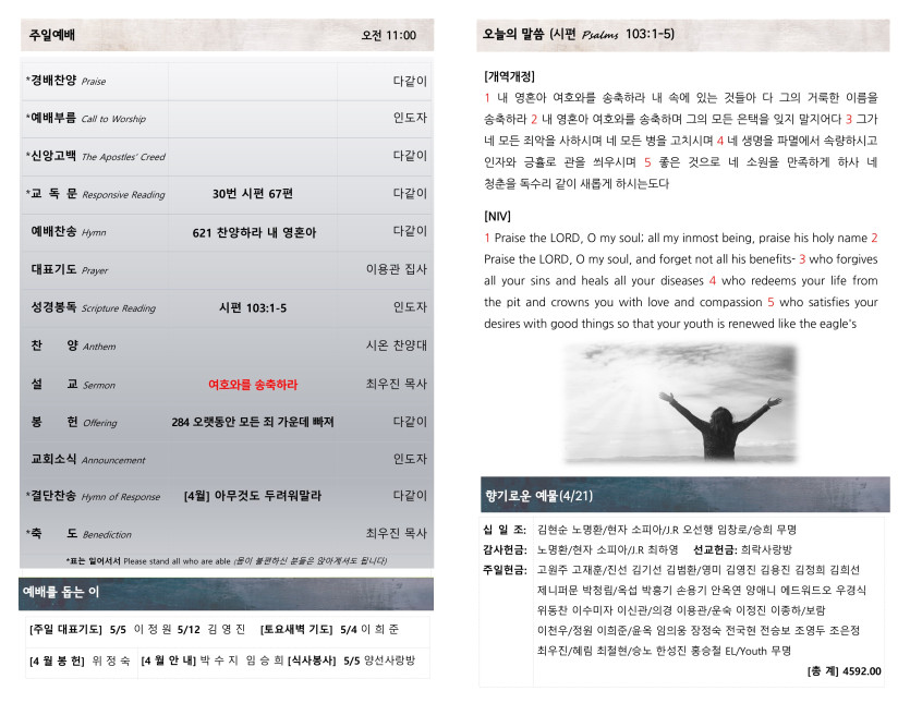 [042824] 주일예배 주보 > 예배주보 Bulletin