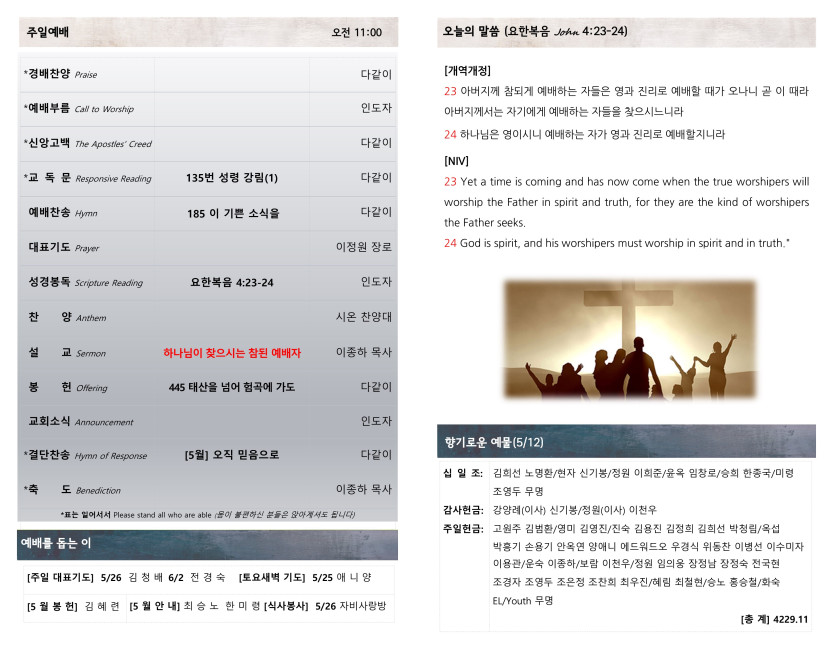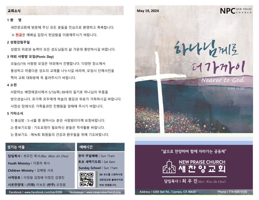 May 18, 2024 . 새찬양교회 [051924] 주일예배 주보