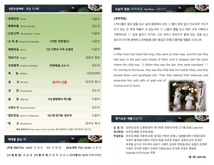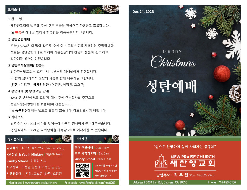 December 23, 2023 . 새찬양교회 [122423] 주일예배 주보